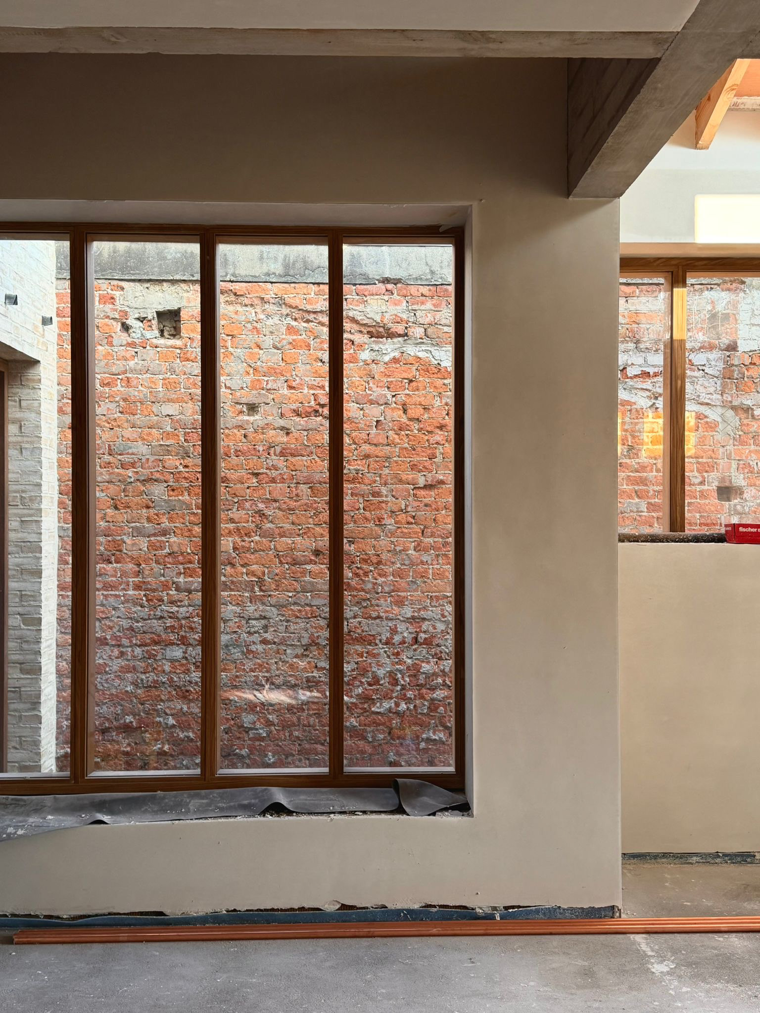 De keuken en eetruimte vormen het hart van de uitbreiding en zijn strategisch in het midden van het perceel gepositioneerd, los van de scheidingsmuren. Deze opstelling zorgt ervoor dat natuurlijk licht ook zijdelings binnenvalt, waardoor een lichtrijke en aangename leefomgeving ontstaat. Door de centrale plaatsing ontstaat er niet alleen een dynamische interactie tussen binnen en buiten, maar wordt ook een ruimtelijk evenwicht gecreëerd tussen de bestaande woning en het nieuwe volume. De open structuur maakt het mogelijk om de keuken en eetruimte subtiel te verbinden met zowel de tuin als de aangrenzende leefruimtes, zonder dat ze aan intimiteit verliezen.